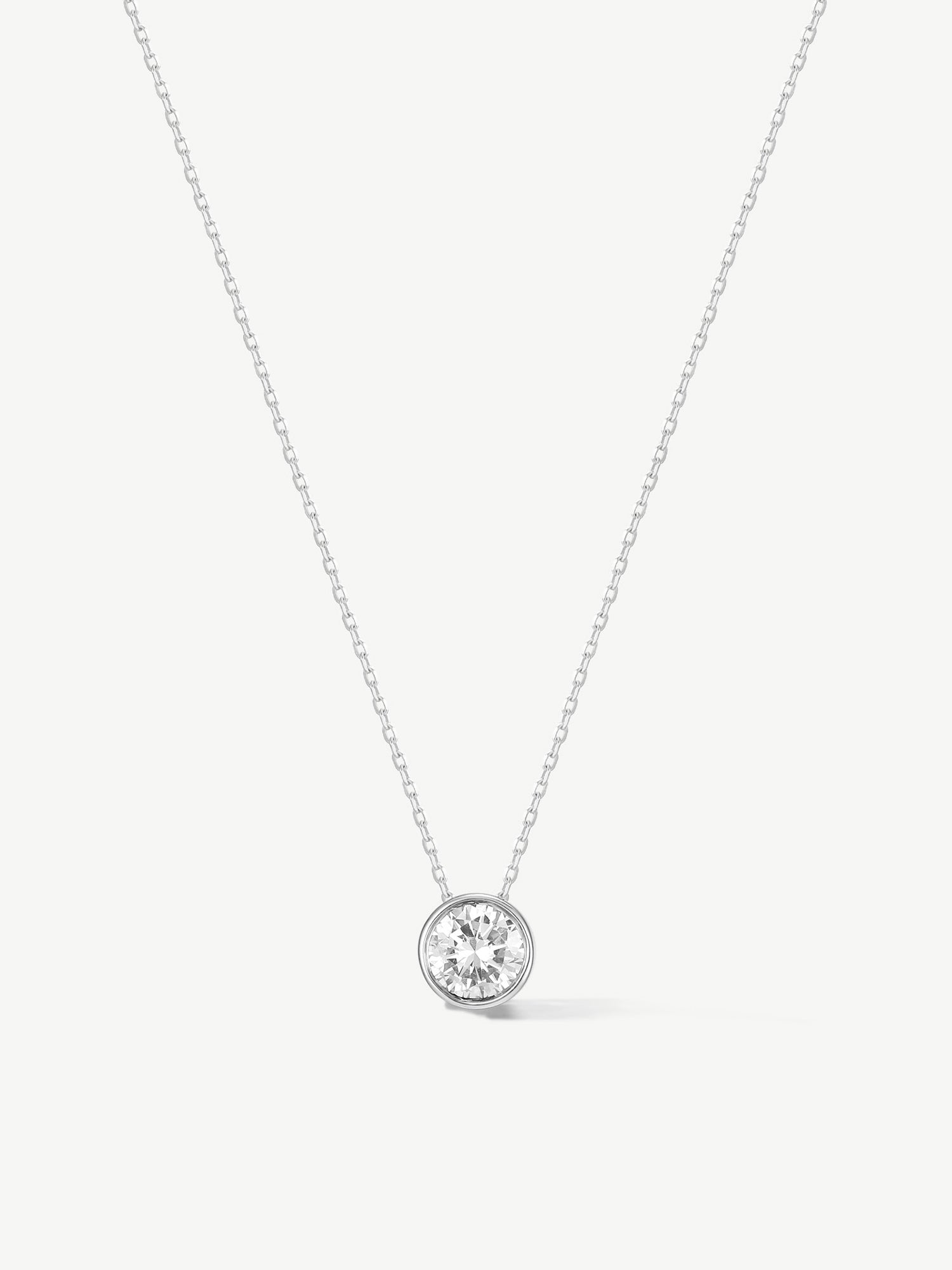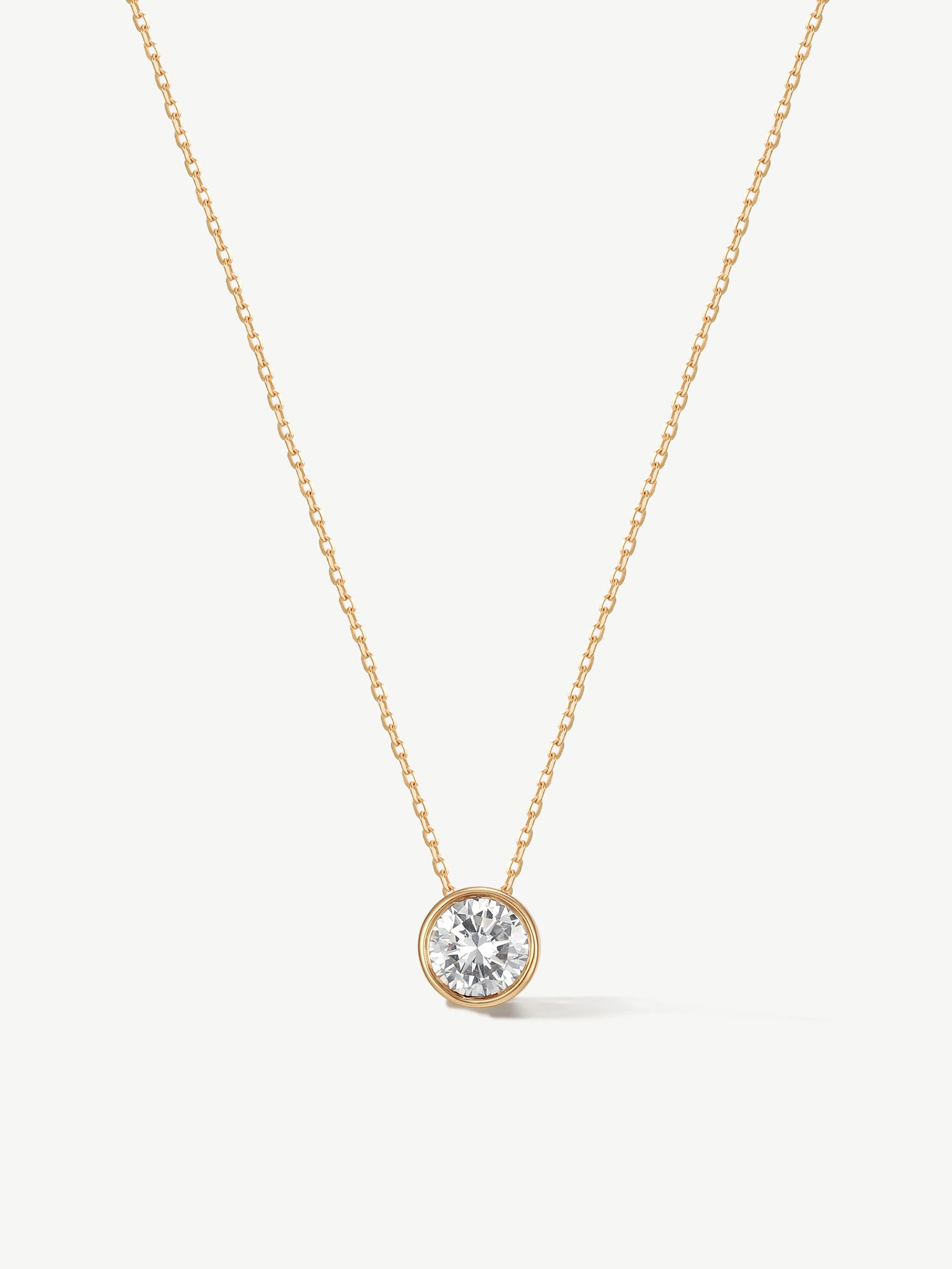 "Ray of Light" Bezel Setting Round Lab Grown Diamond Pendant Necklace in 14K Solid Gold