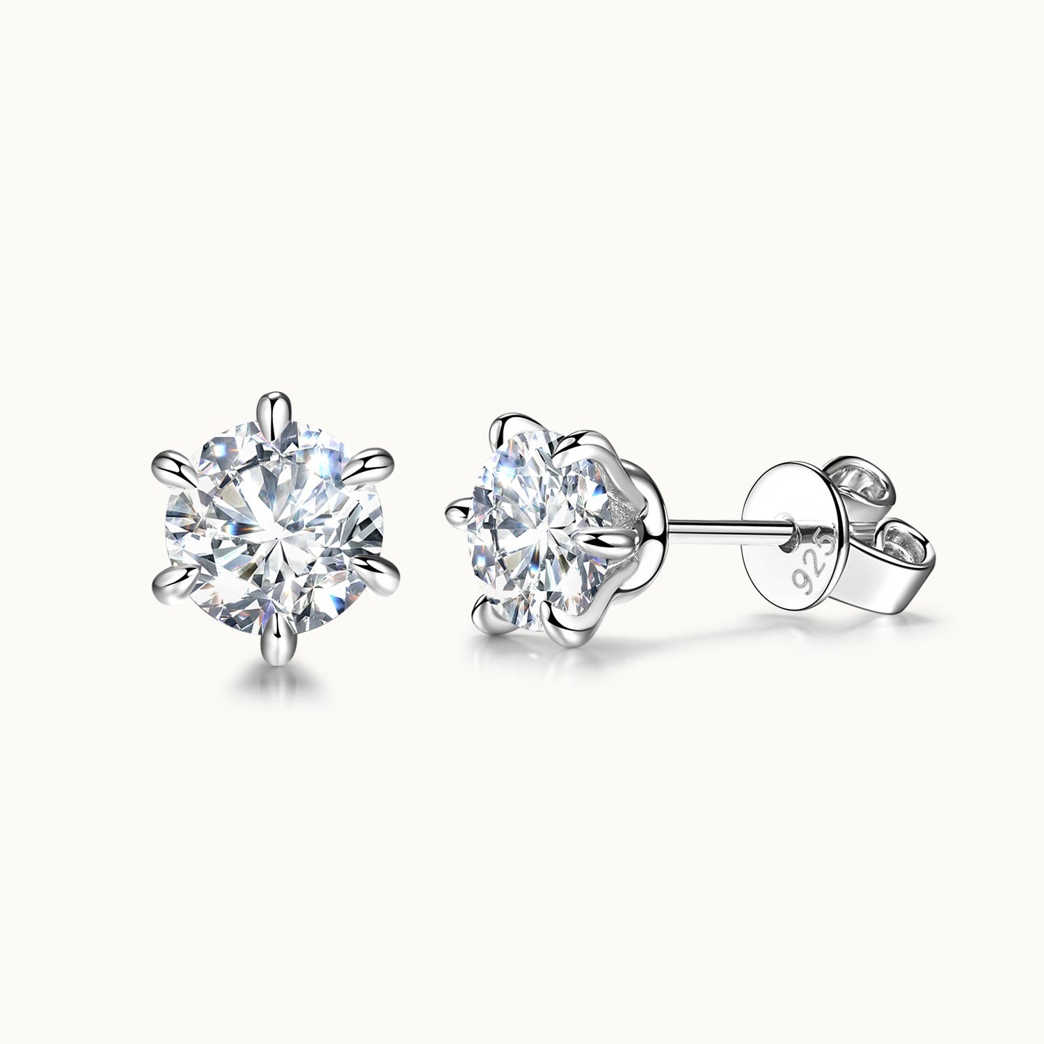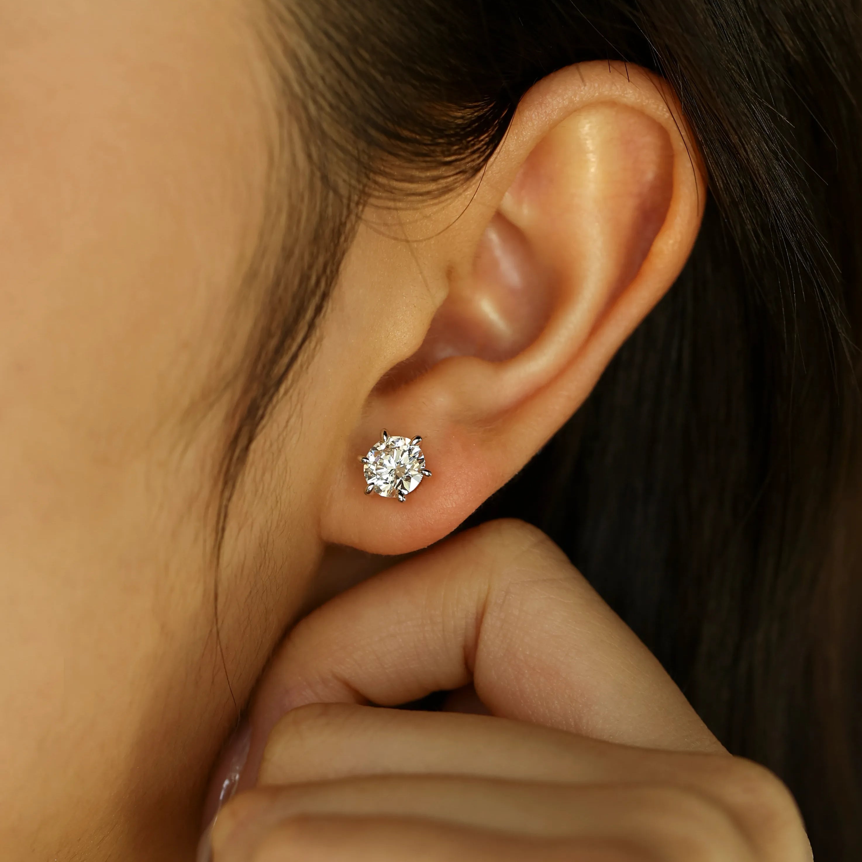 "Elegant Light" Classic Six Prong Round Lab Grown Stud Earrings