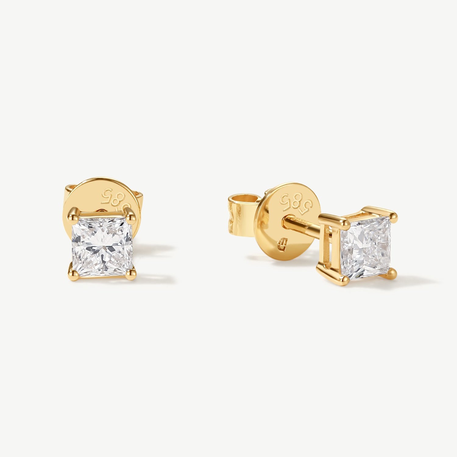"Crown of Light" Princess Cut Lab Grown Diamond Stud Earrings in 14K Solid Gold