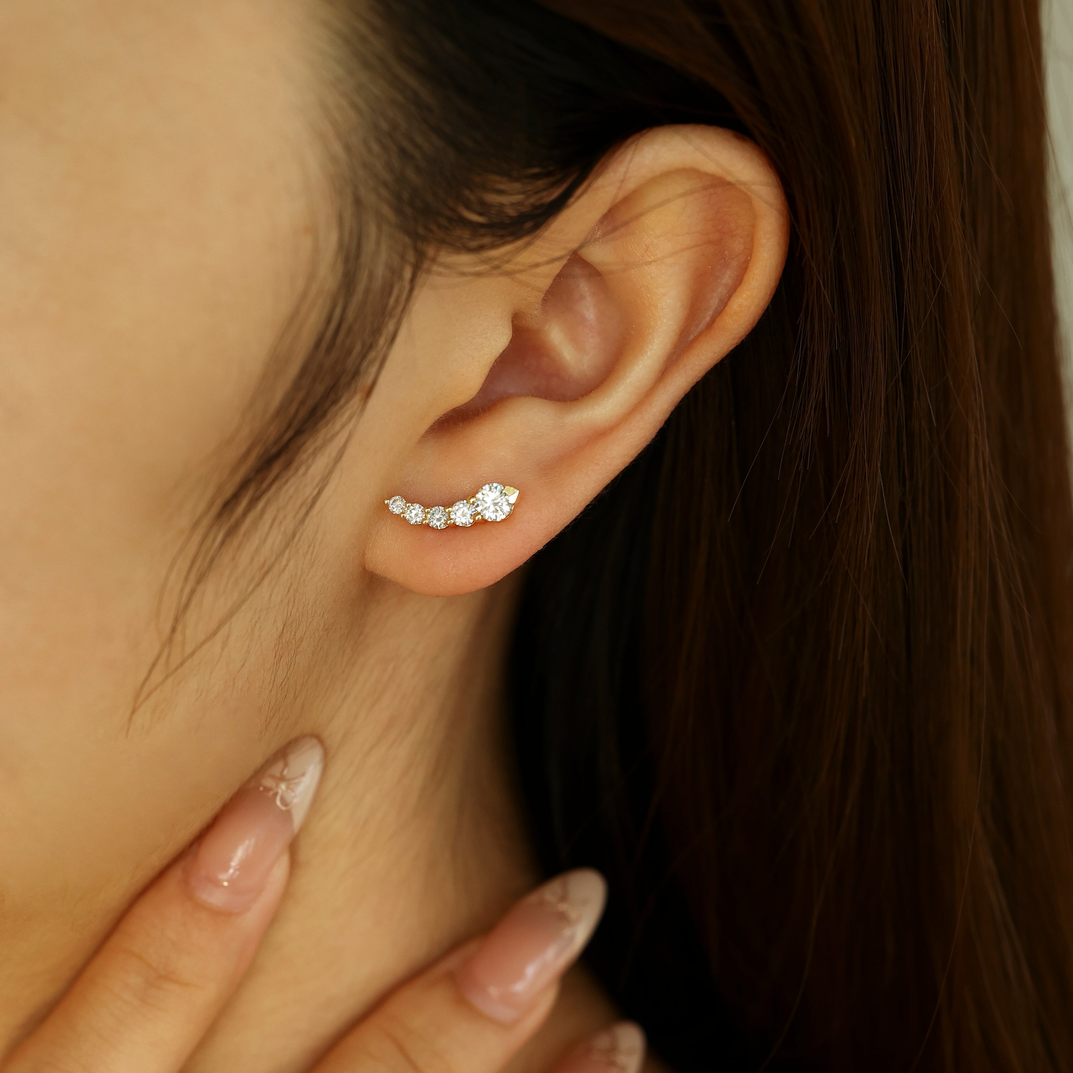 "Brilliant Curve" Classic Wave Lab Grown Diamond Stud Earrings in 14K Solid Gold