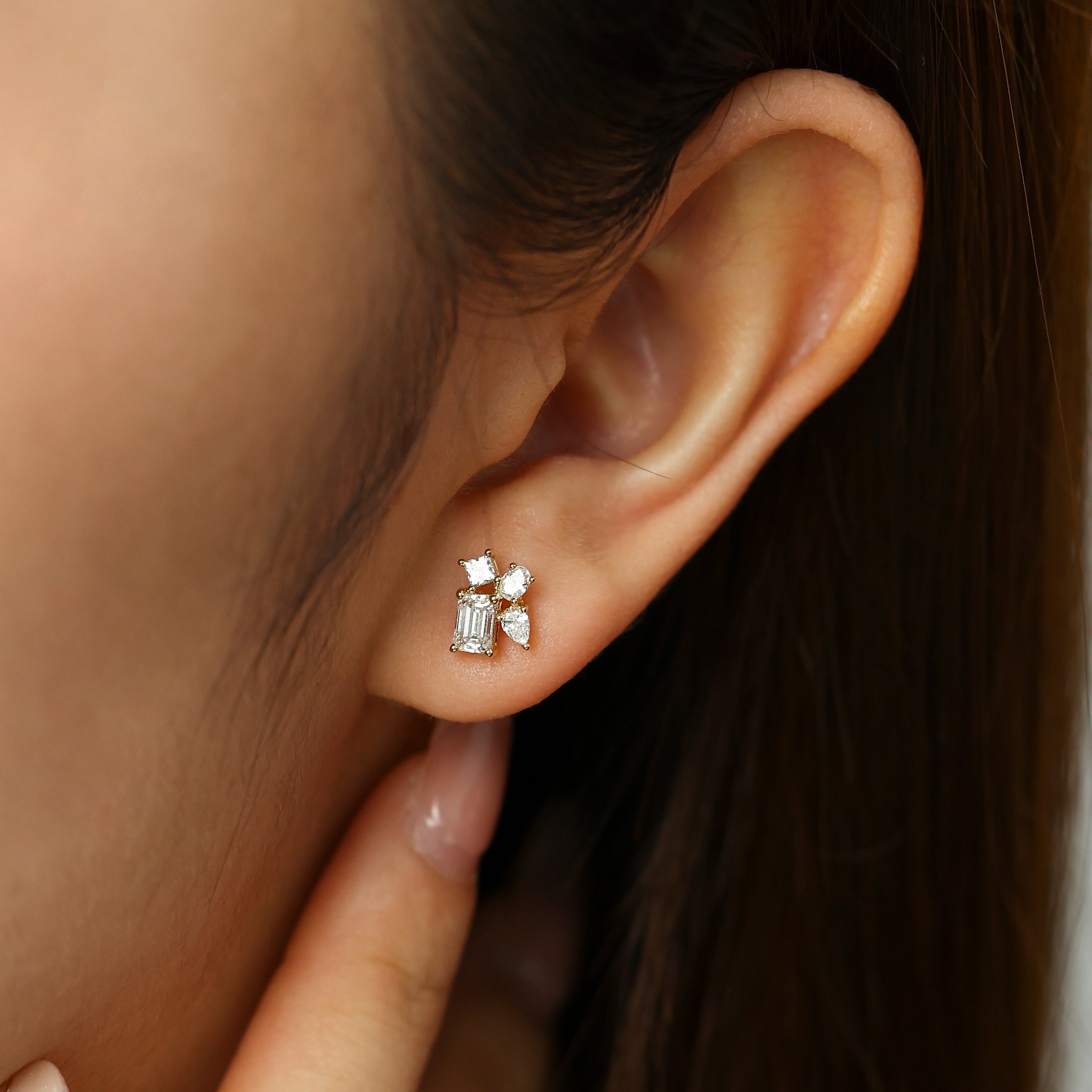 "Aurora Cluster" Lab Grown Diamond Cluster Stud Earrings in 14K Solid Gold