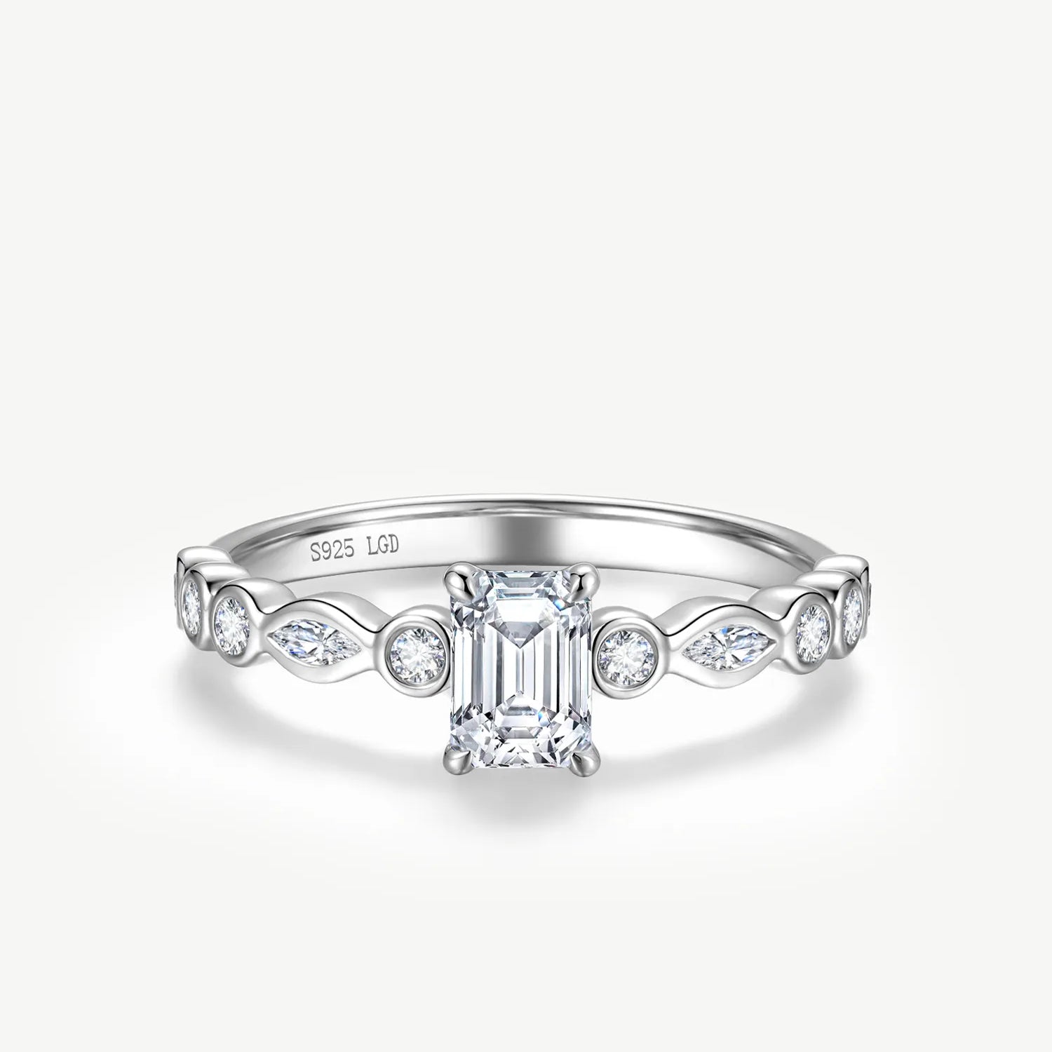"Radiant Muse" Emerald-Cut Engagement Ring Sterling Silver