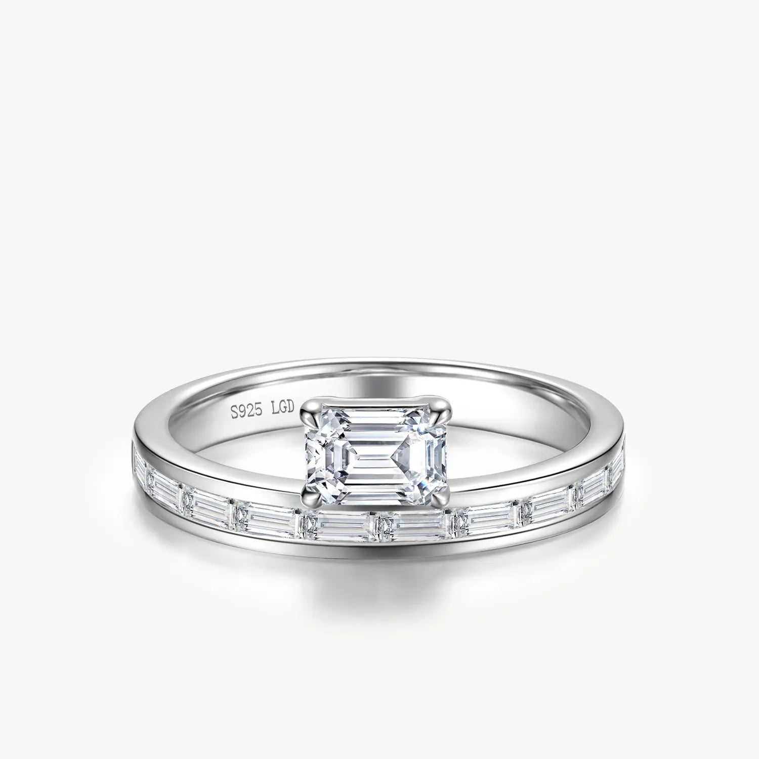 Emerald Cut Channel Set Baguette Engagement Ring in Sterling Silver