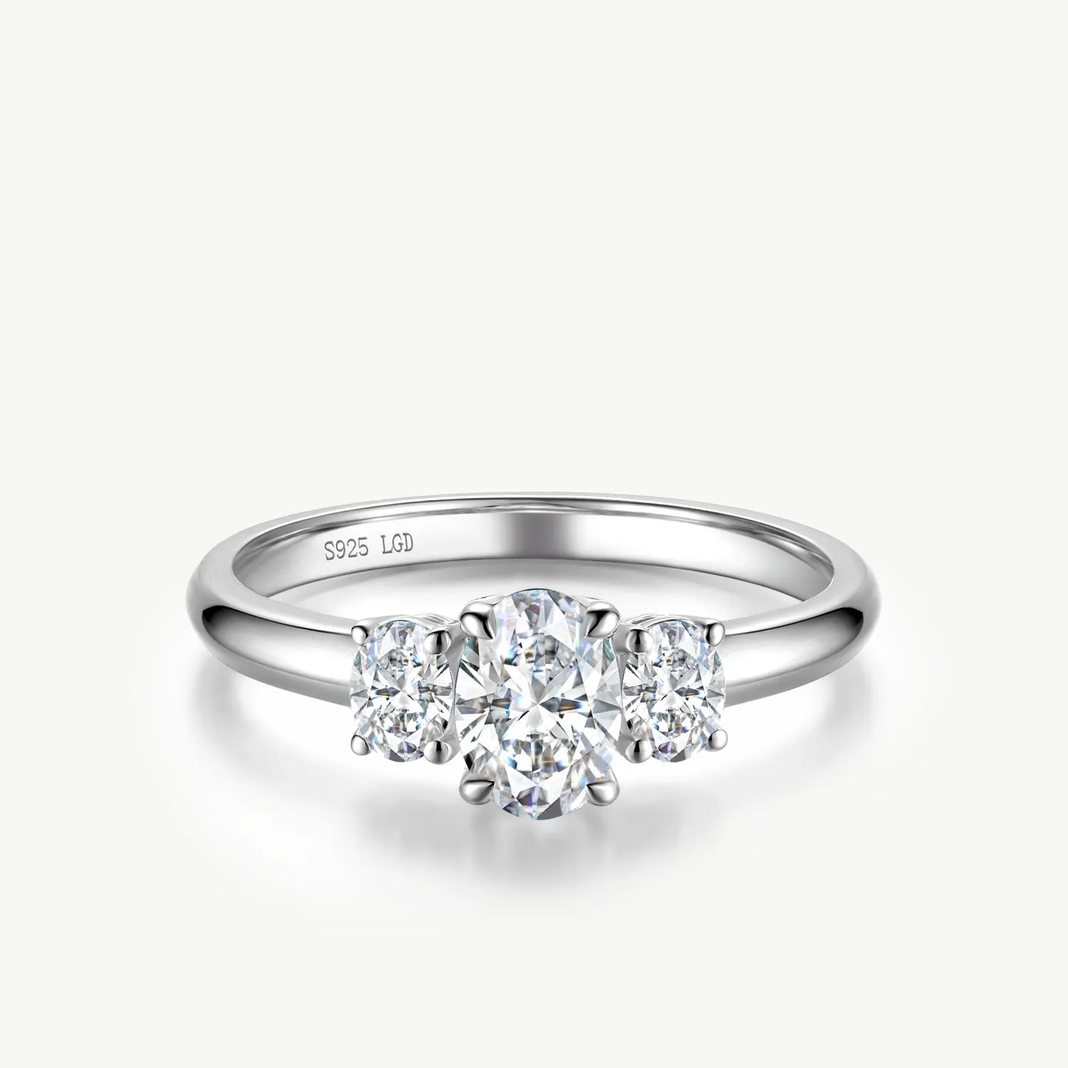 Oval Cut Lab Grown Diamond Three Stone Engagement Ring in Sterling Silver