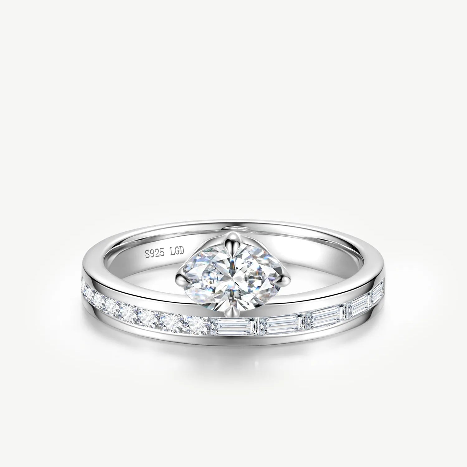 Oval Cut Channel Set Baguette Engagement Ring in Sterling Silver