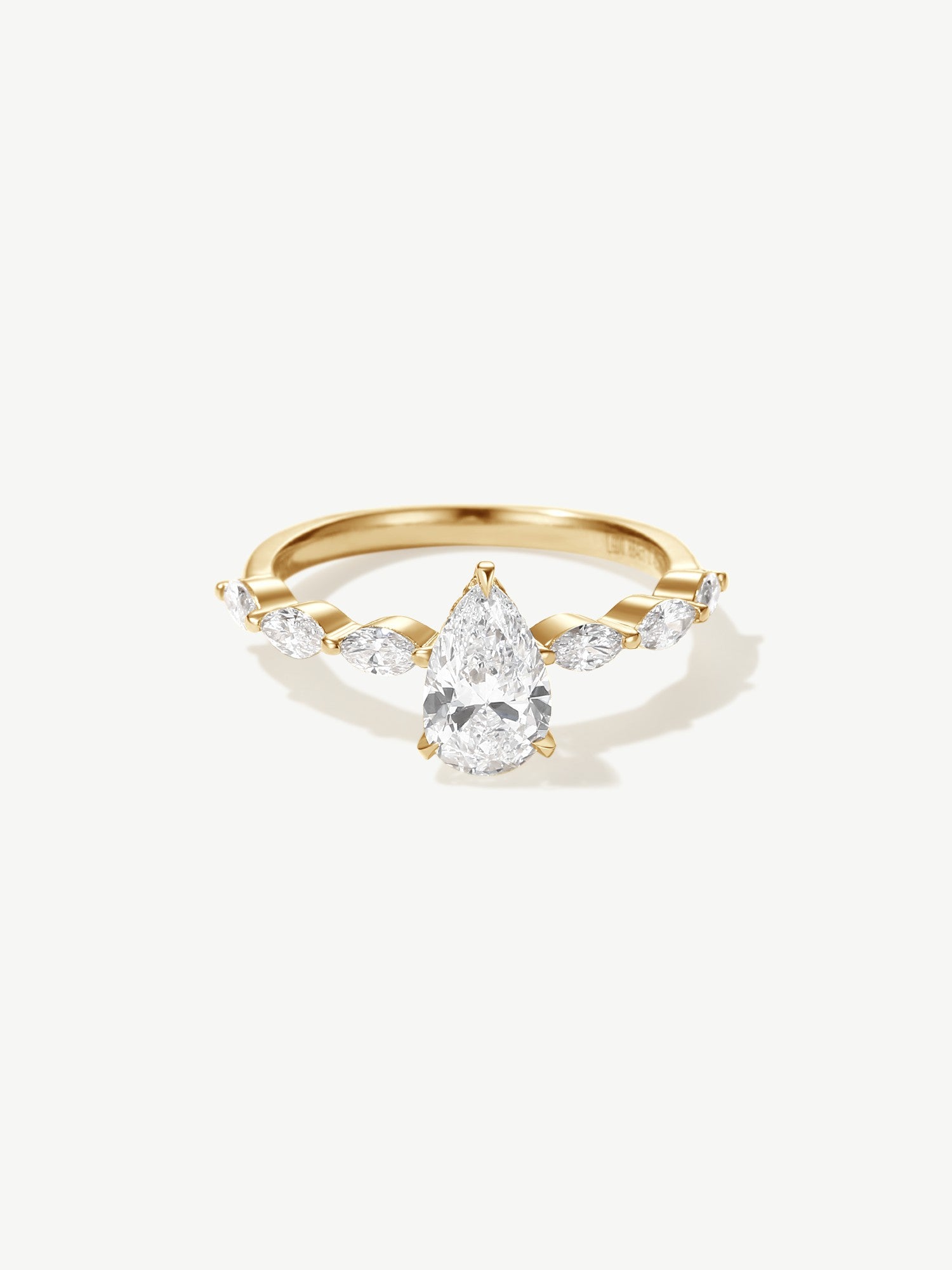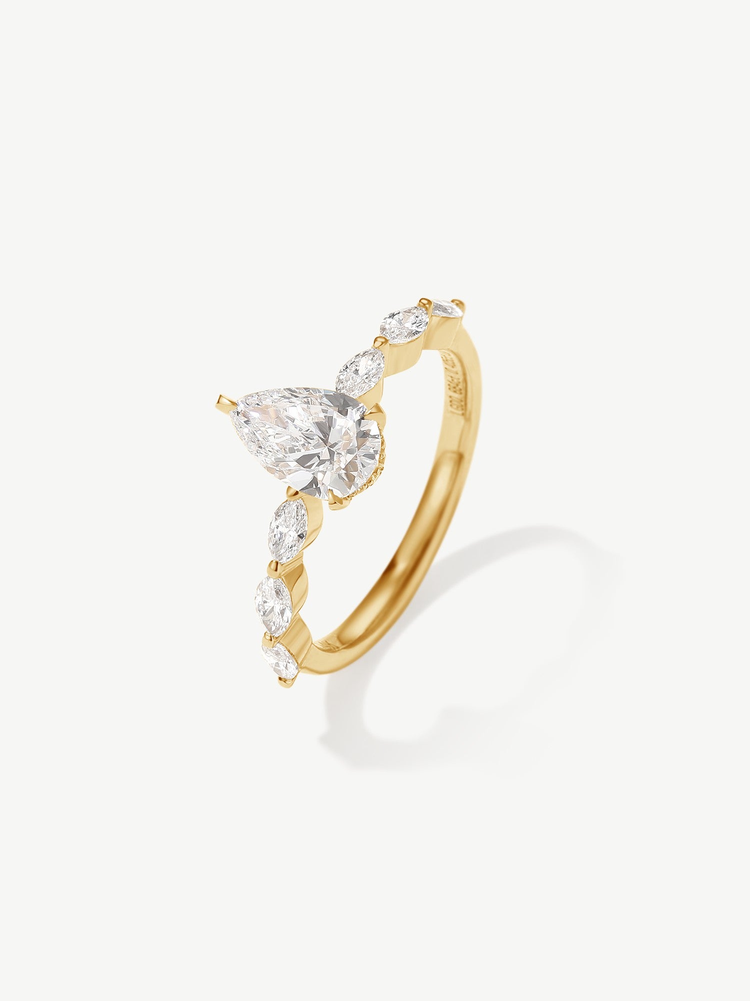 Our "Aurora of Commitment" captures the brilliance of a love that begins with a promise and flourishes into eternity. At its heart lies a luminous, fancy pear-shaped lab-grown diamond, symbolizing the dawn of a shared journey filled with endless possibilities.