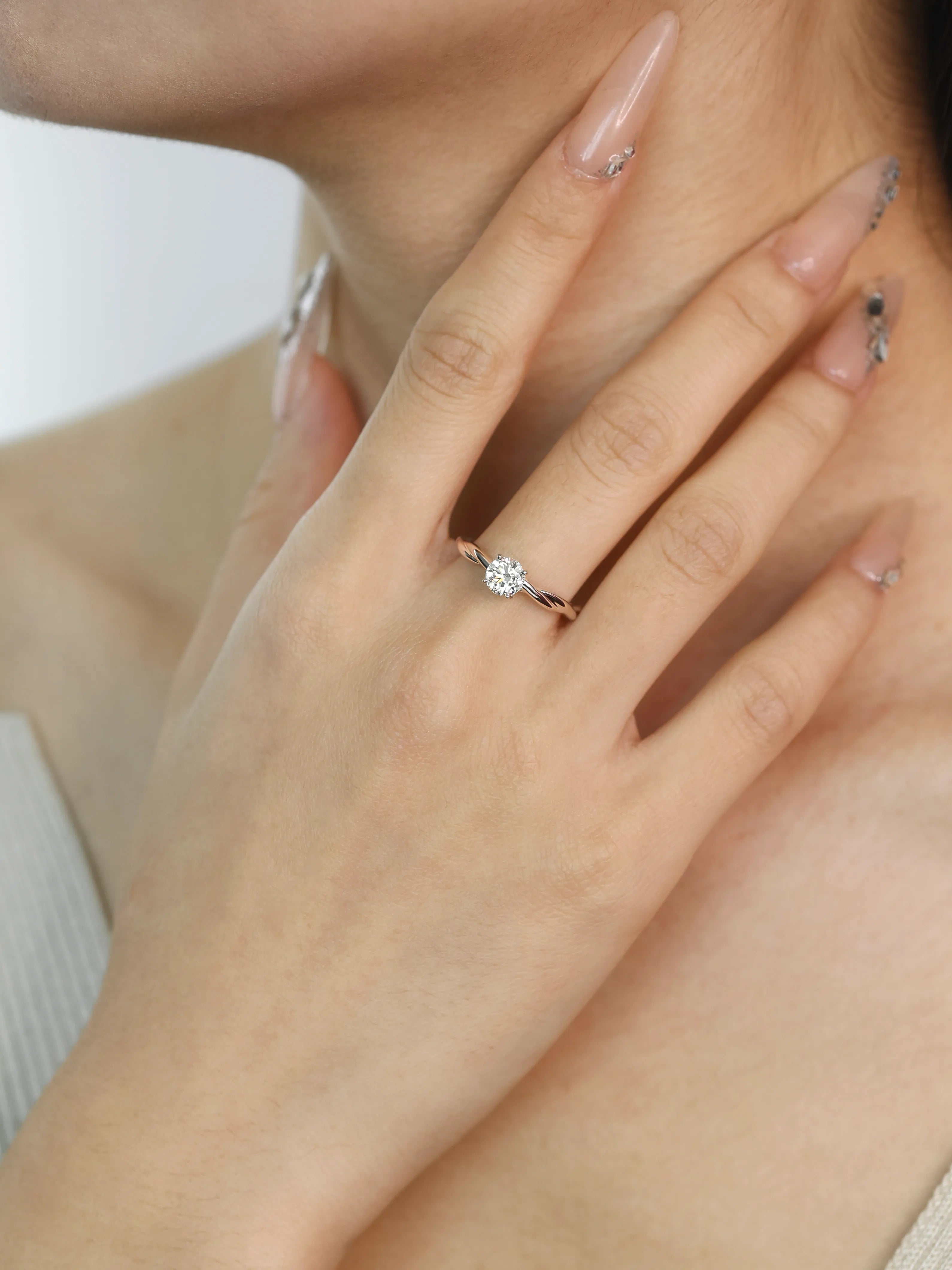 Elegance with a twist. This stunning engagement ring features a brilliant Round Cut Lab-Grown Diamond secured in a classic four-prong setting. The standout feature is the entwined, rope-style band crafted from high-quality S925 sterling silver, symbolizing two lives weaving together.