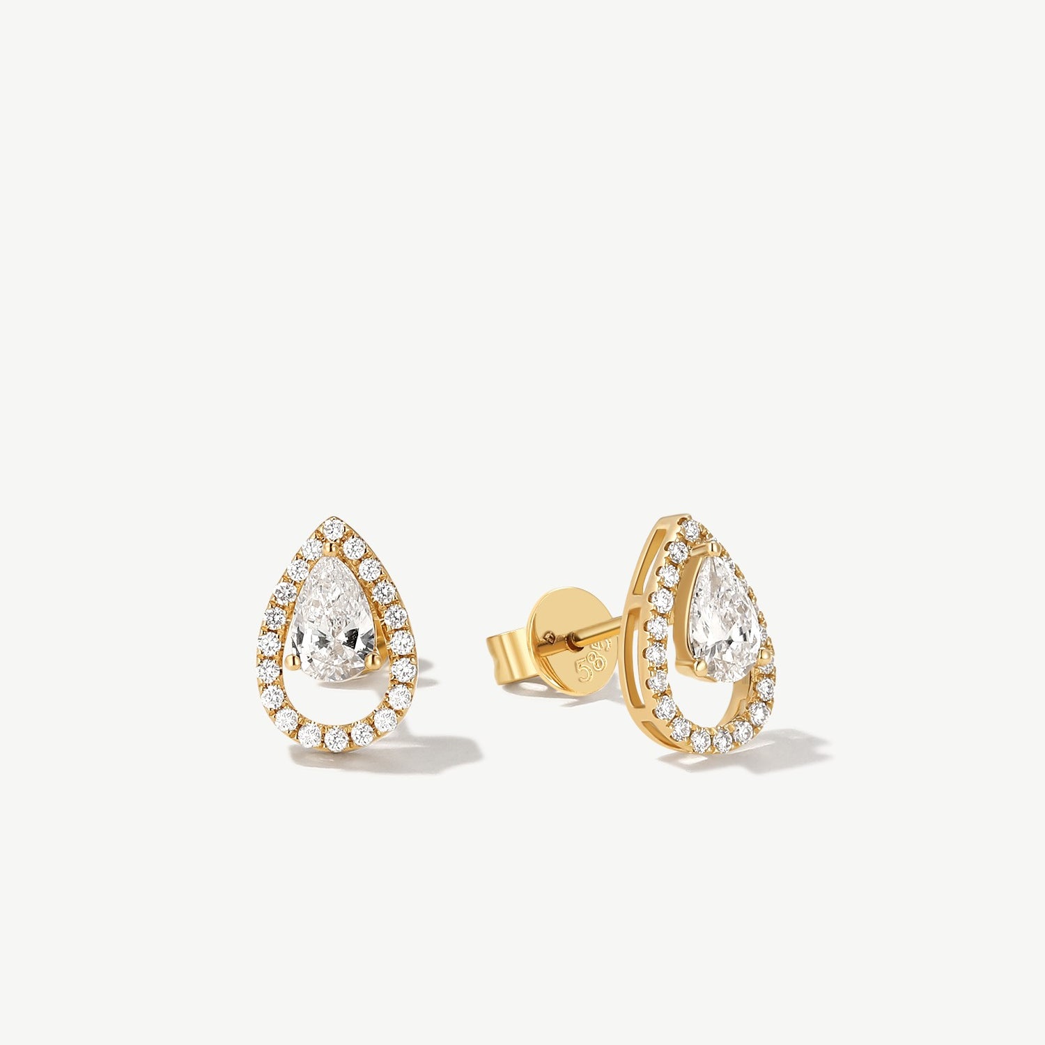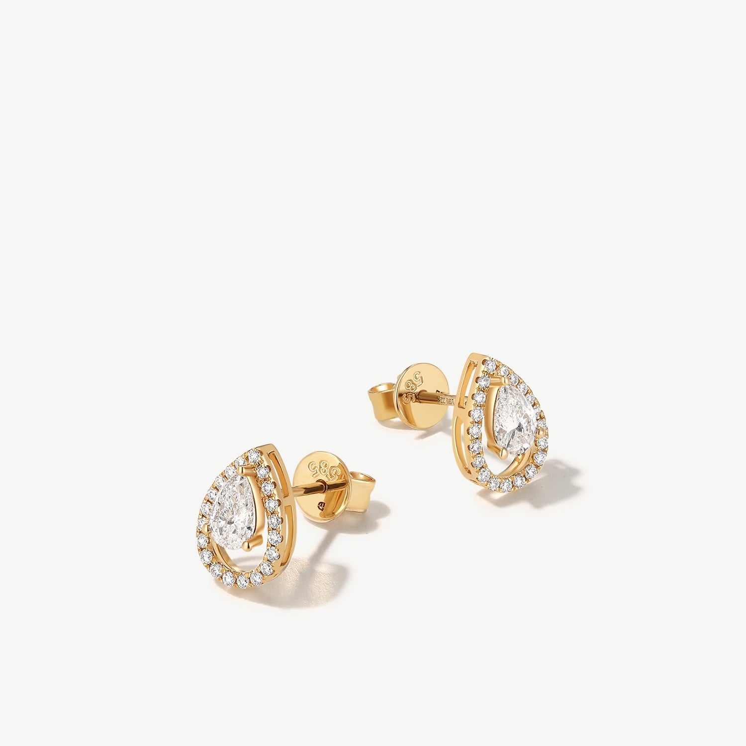 "Halo of Grace" Pear Shaped Halo Lab Grown Diamond Stud Earrings in 14K Solid Gold