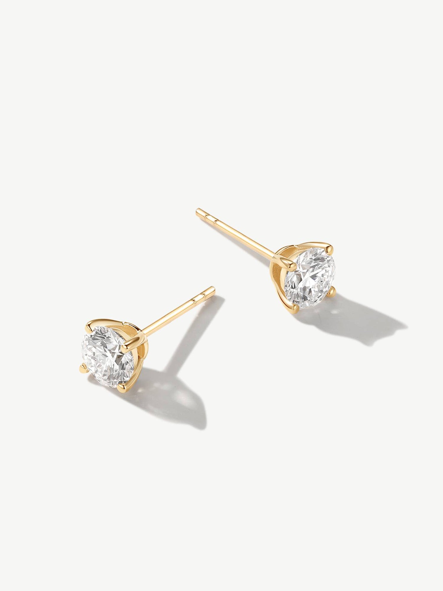 "Essence of Light" Four Prong Lab Grown Diamond Earring Studs in 14K Gold