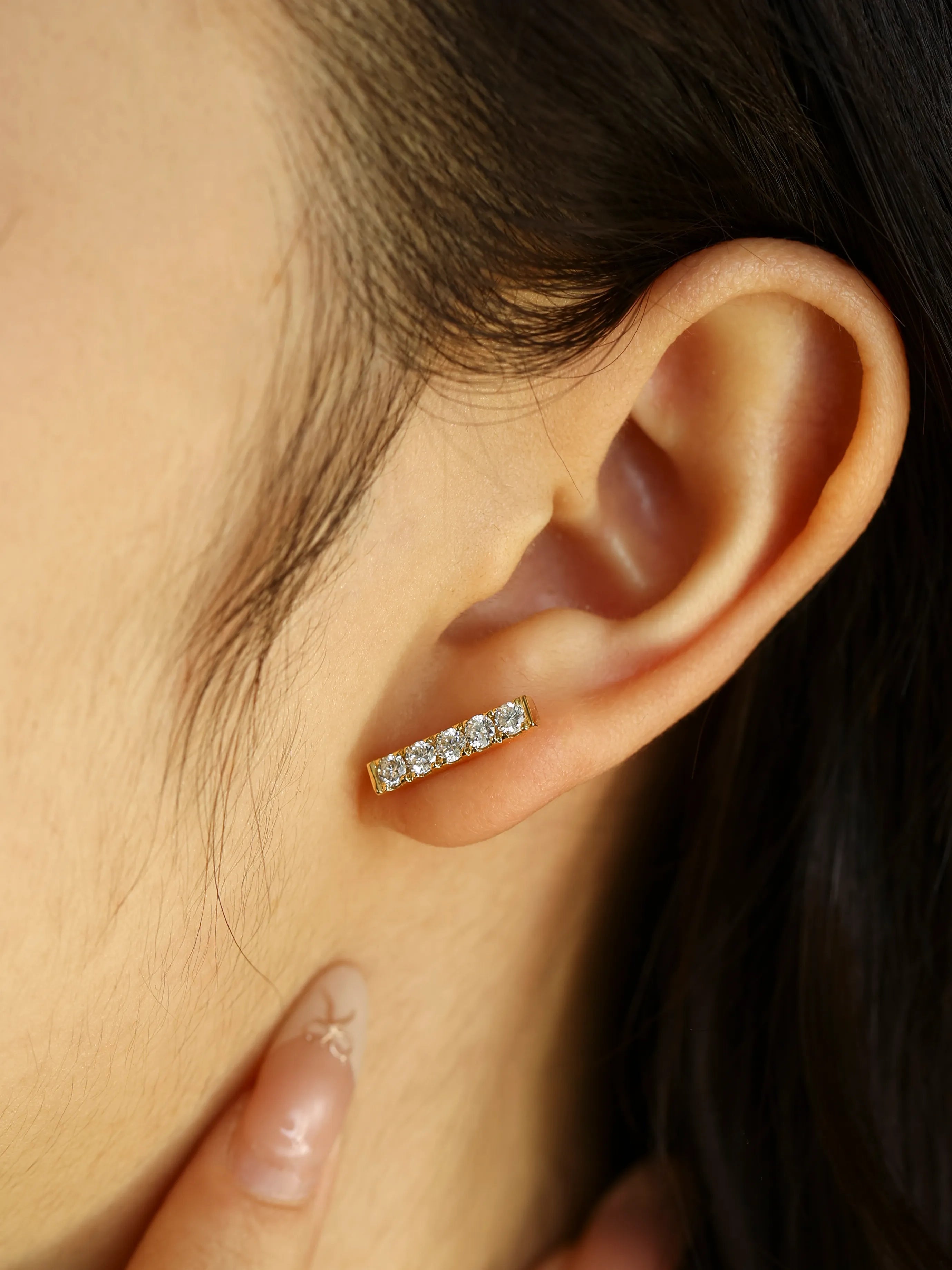 "Line of Brilliance" Pavé Bar Lab Grown Post Earrings in 14K Solid Gold