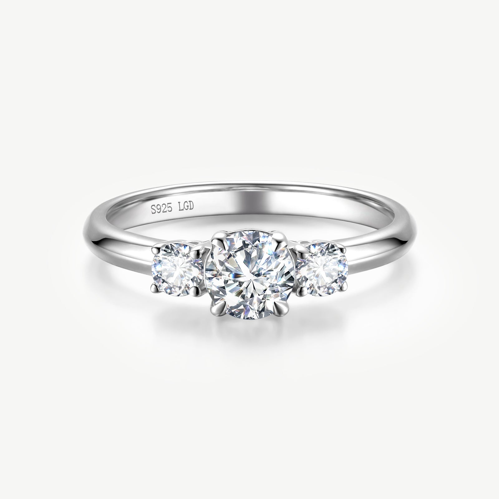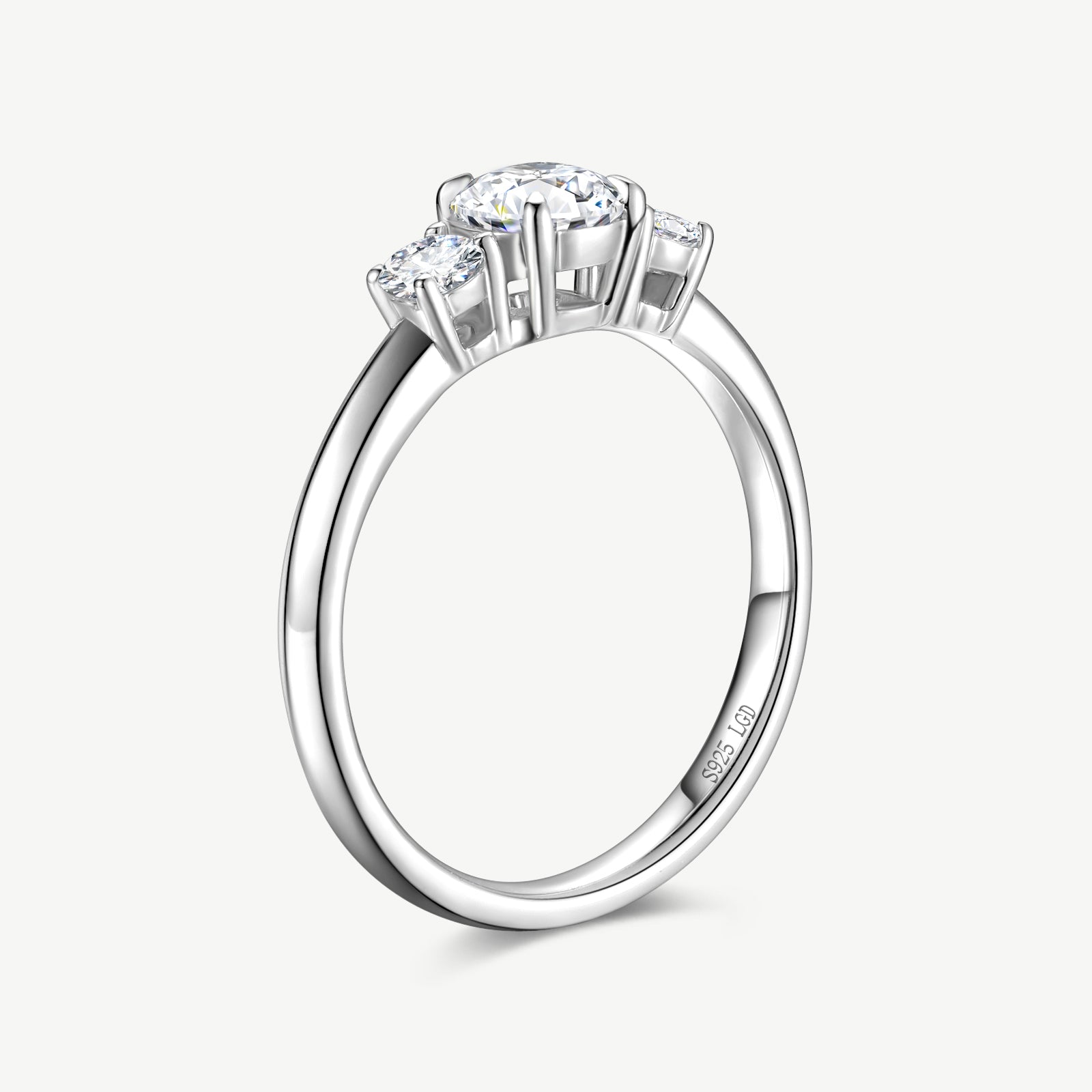 Three Stone Round Cut Lab Grown Diamond Engagement Ring in Sterling Silver