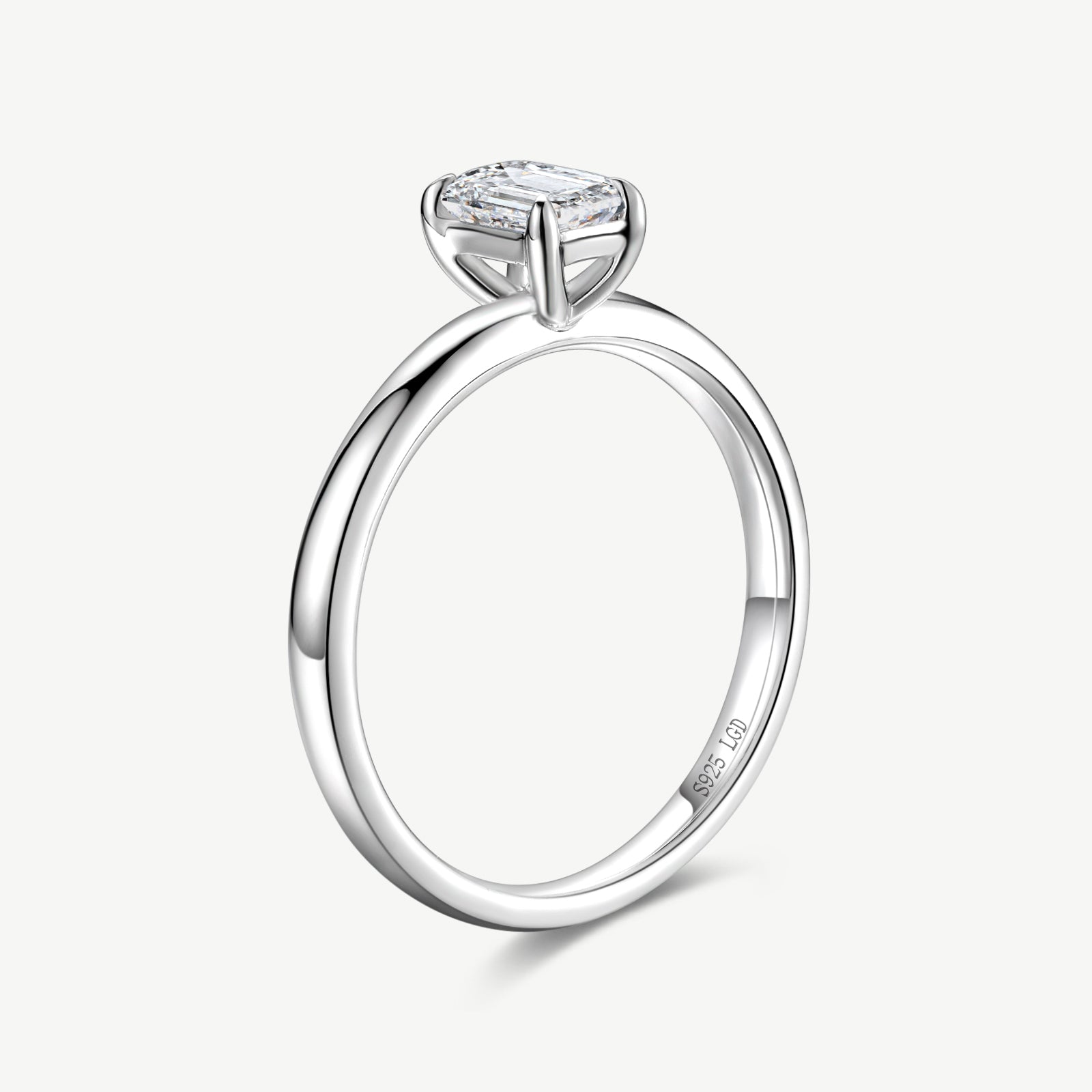 Emerald Cut Lab Grown Diamond Solitaire Engagement Ring in Sterling Silver