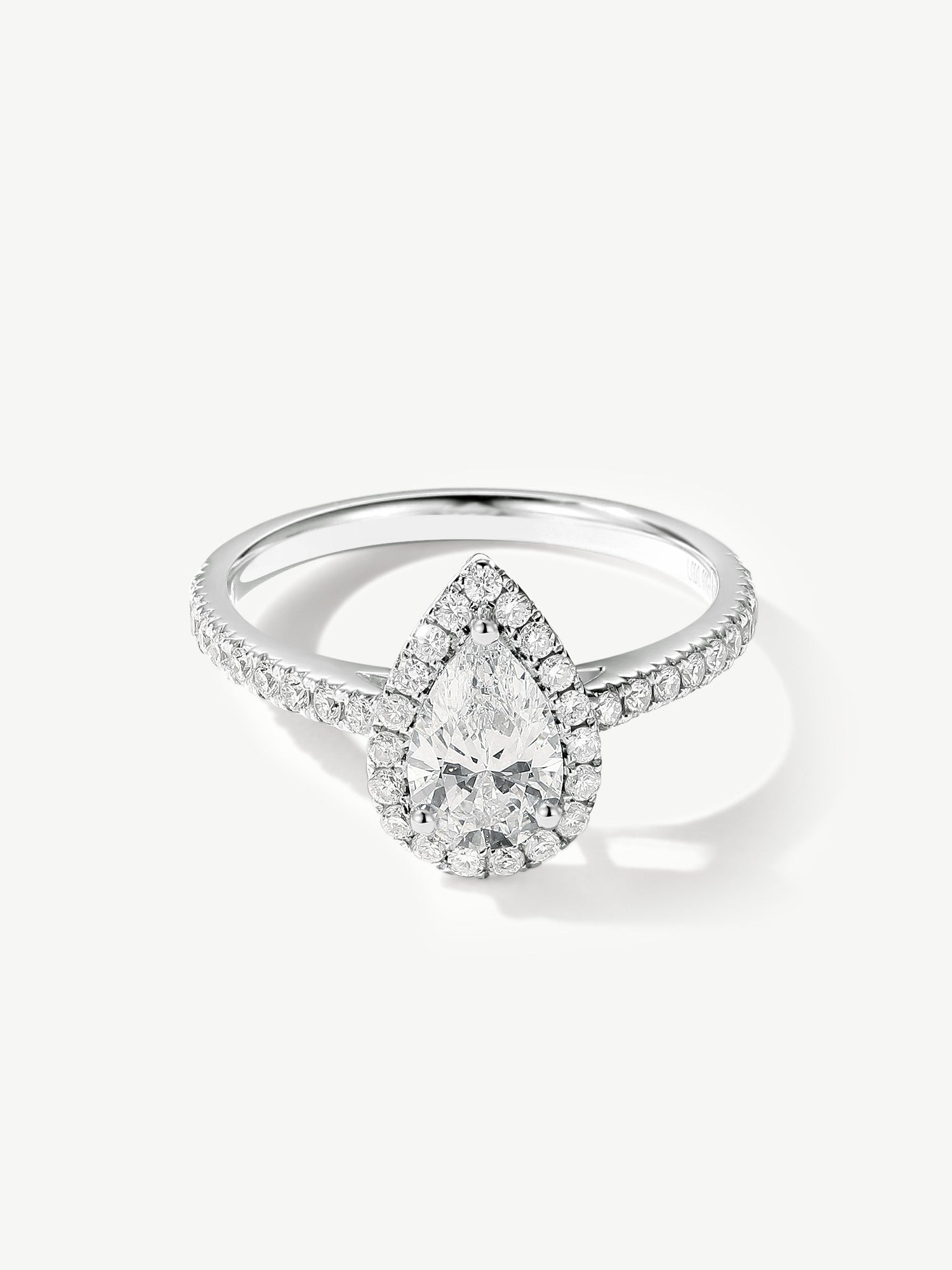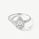 "Timeless Accord" Halo Pear Shape One Carat Diamond Engagement Ring in 14K Solid Gold