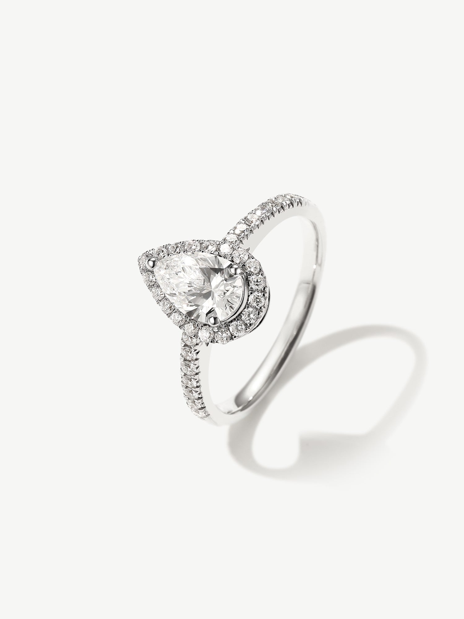 "Timeless Accord" symbolizes the harmony that defines a lifetime of love and shared aspirations. At its heart lies a luminous pear-shaped lab-grown diamond, making this halo engagement ring a celebration of the enduring promise between two souls to journey through life together as one.