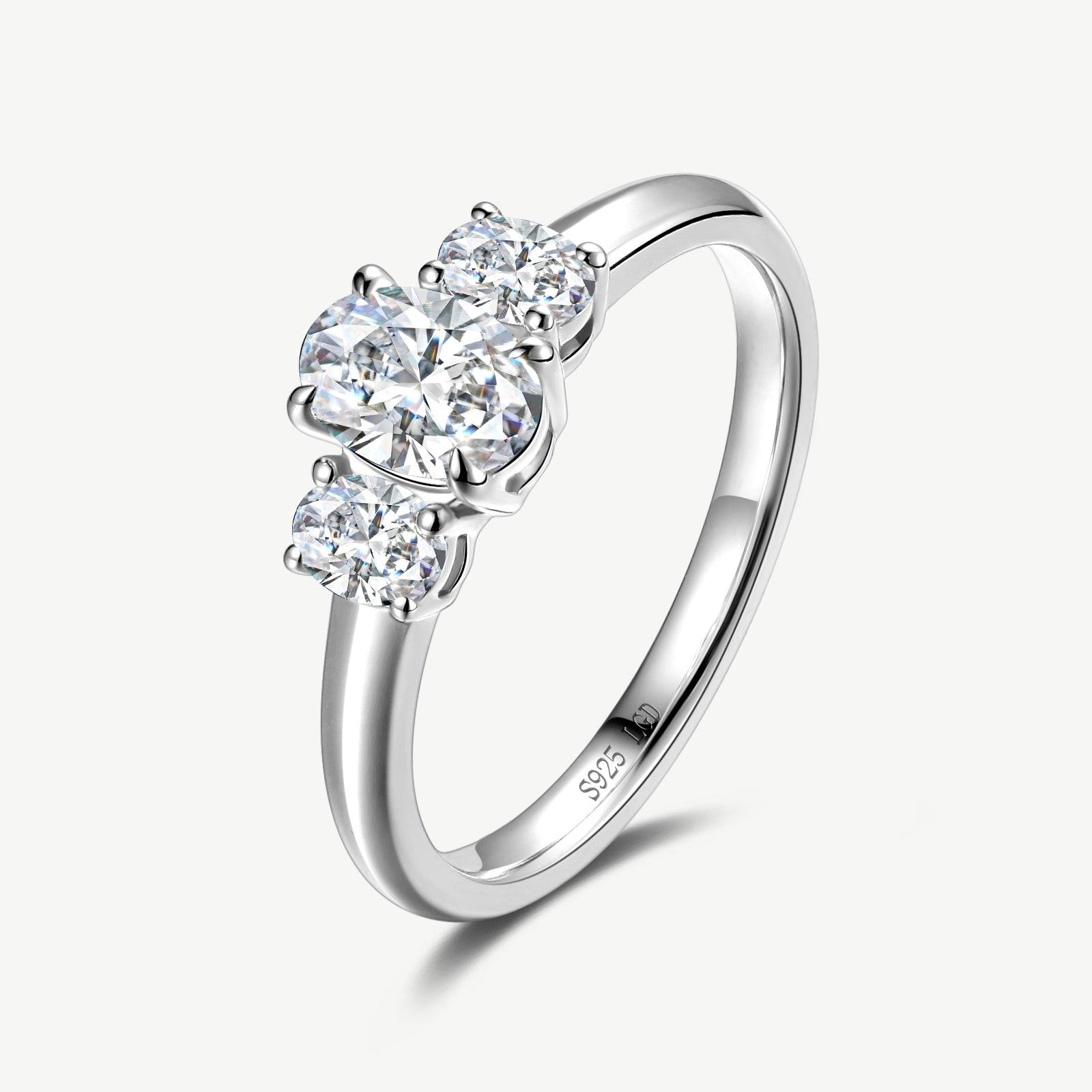 Represent your journey together with this stunning three-stone oval engagement ring. Featuring a brilliant oval-cut lab-grown diamond centerpiece flanked by two perfectly matched oval side stones, this design maximizes surface area for a grand, finger-lengthening look.