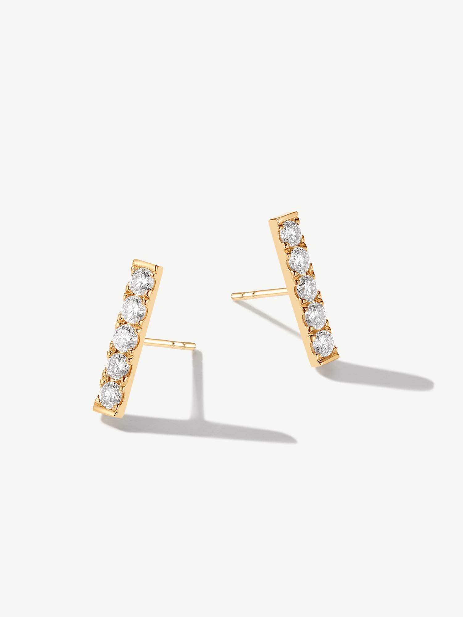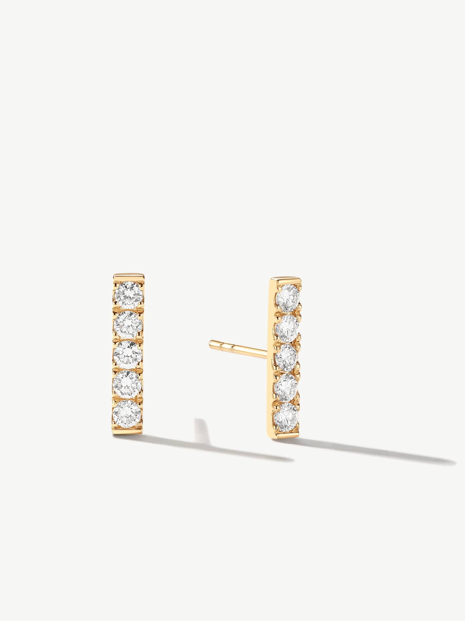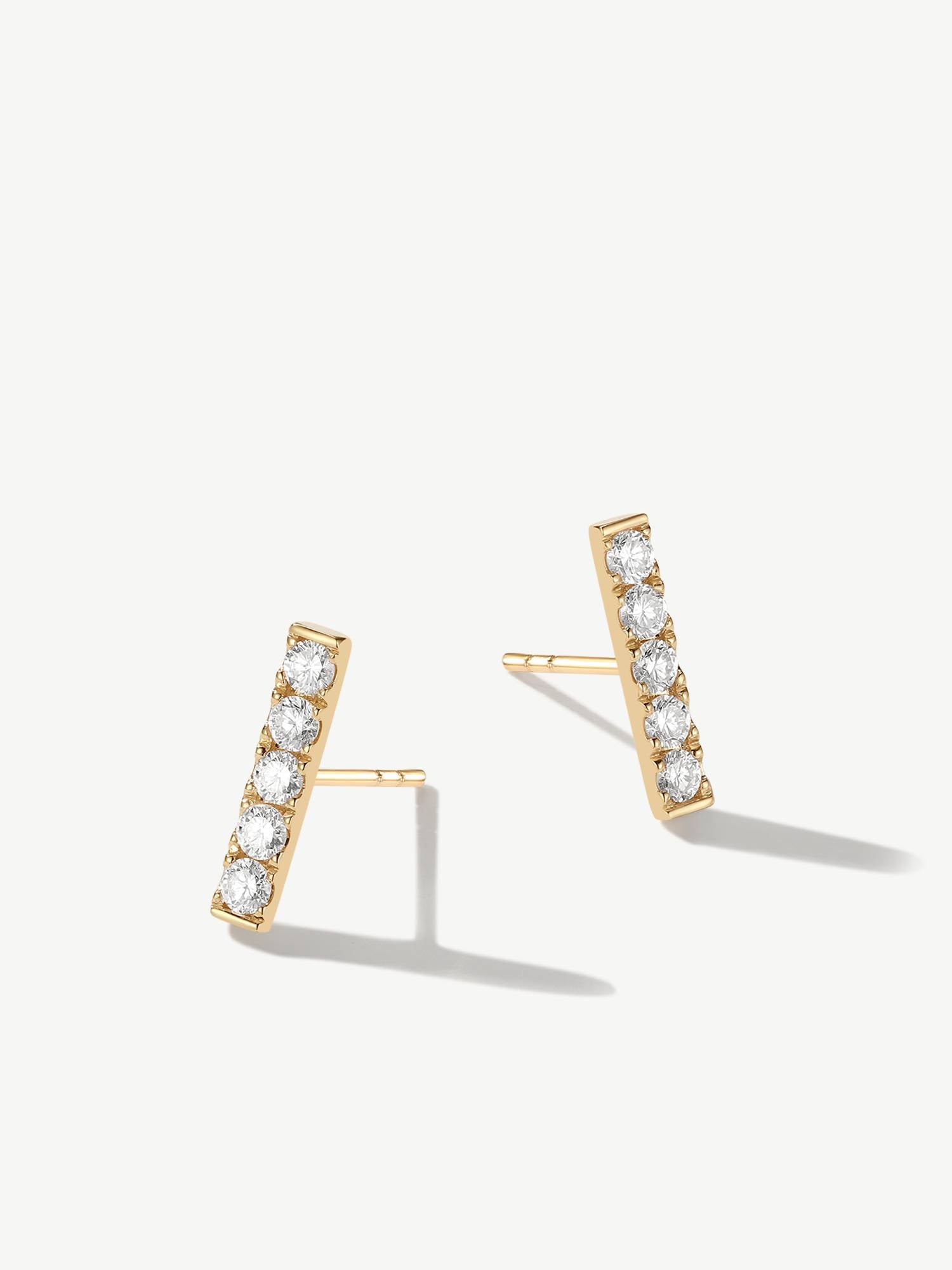 "Line of Brilliance" Pave Bar Lab Grown Post Earrings in 14K Solid Gold